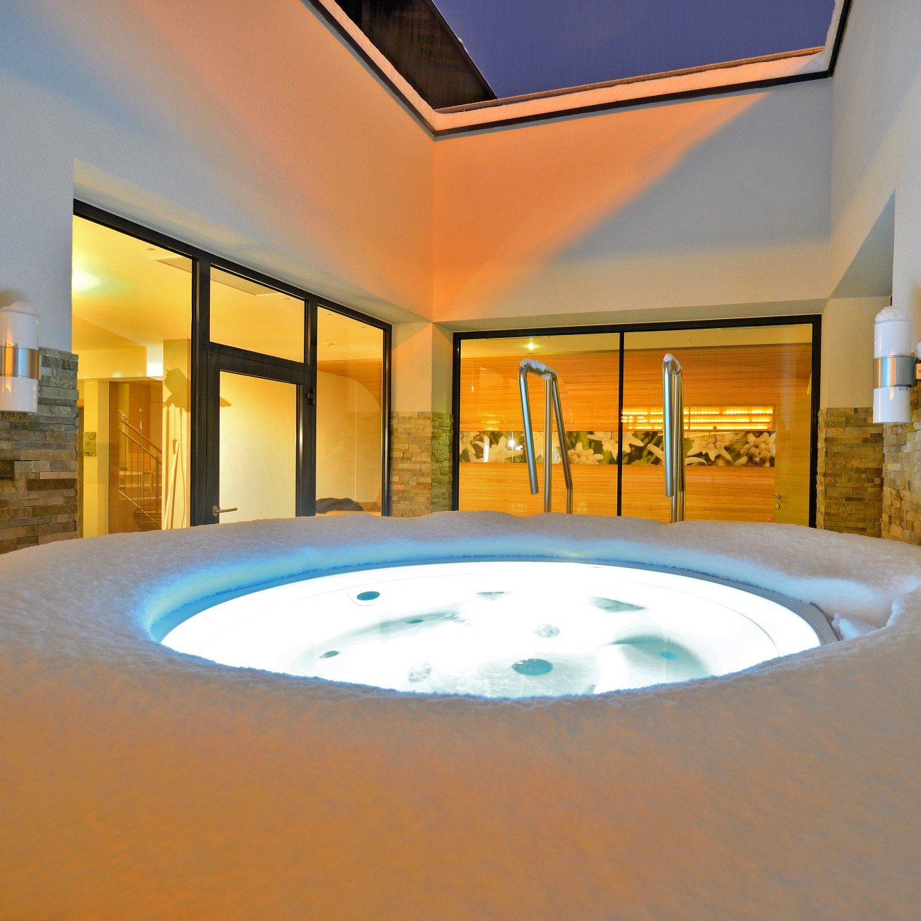 … und das alles in unserem modernen SPA. Lassen Sie in einem Duft aus Zirbe, Lärche und Fichte Ihre Seele baumeln und schalten Sie ab. Die Zeit schenkt Ihnen der Urlaub. Genießen Sie in einem Raum, der wohldimensioniert alles an Erholung zulässt, was Sie brauchen. Wählen Sie aus Bio-Zirben-Sauna, finnische Sauna (im Nacktbereich UND auf der Dachterrasse beim Pool), Soledampfbad, Infrarotkabine oder Außenwhirlpool Ihren Favoriten.